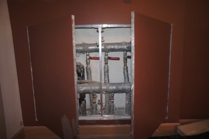 Конструкция крепится в каркас фальшстены, выставляется в уровень финишного слоя, далее декорируется материалом общей отделки поверхности. Маяками служит профиль полотна, заполненного гипсоволокном.