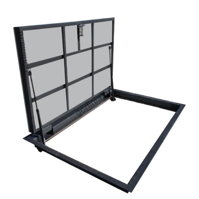 Облегченная рама из листового проката 3 мм с наличником, жесткий каркас полотна в обвязке трубой 30х20 заполнен гипсоволокнистым влагостойким листом над утеплителем под чистовую отделку плиткой.