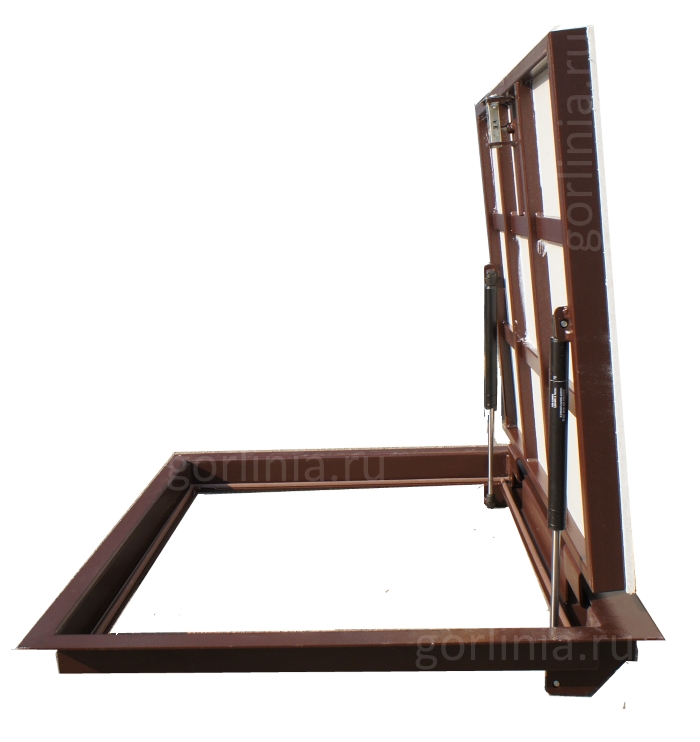Заказная конструкция с подъемным механизмом по стороне 600 и удобным световым окном 550*600 для спуска по лестнице в погреб.