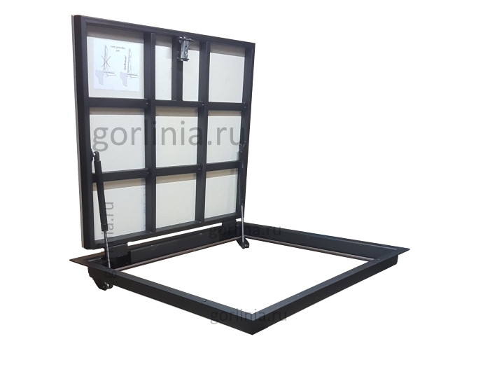 Облегченная модель прямоугольного исполнения без щелей в полу с уведенными за ось открывания петлями. Легкая ходовая часть и удобный монтаж. Комфортный световой проем лаза 750*800 для спуска по лестнице мешков, ящиков, овощей и солений в домашний погреб. При формировании посадочного отверстия обратите внимание, что защитные кожухи шарниров выходят за посадочную отметку по плечевой стороне 900 (см фото).